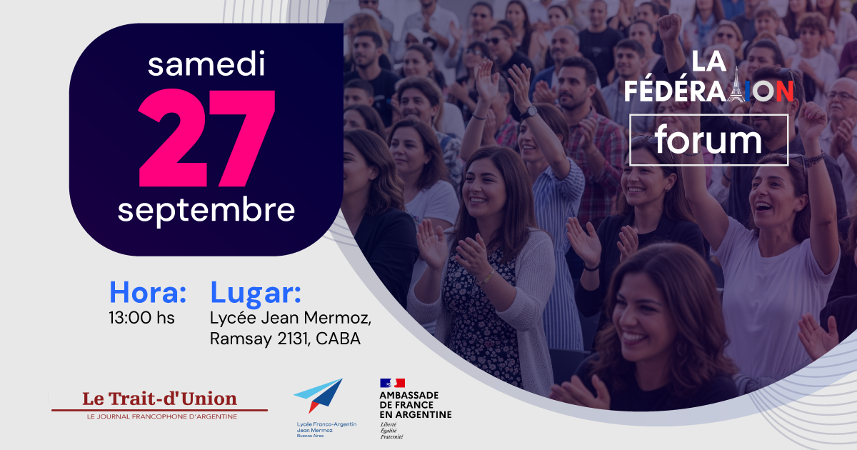 Lycée Jean Mermoz Ramsay 2131, Ciudad de Buenos Aires✨ Un rendez-vous incontournable | Una cita imperdible ✨ 📅 Samedi 27 septembre 2025 | Sábado 27 de septiembre 2025 🇫🇷 FR Le Forum de la Fédération des Associations sera une journée riche et inspirante : 🔹 Le matin : ateliers et tables rondes pour renforcer la coopération entre associations et explorer les services de […]